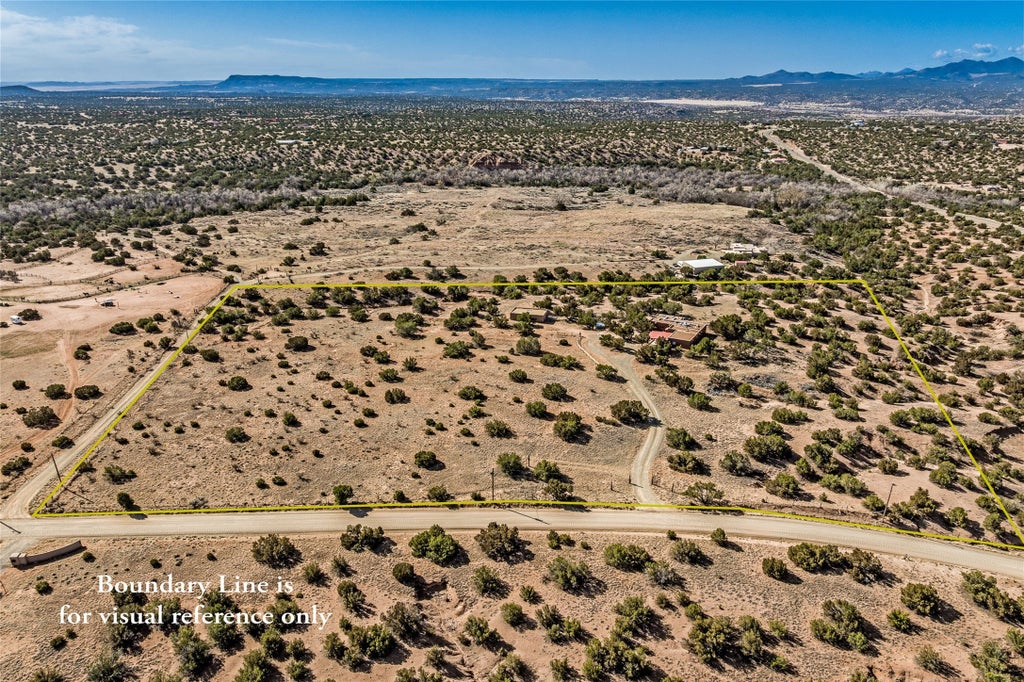 This delightful and versatile property spans over 10 acres and horses are allowed. It features a spacious main house with an attached apartment and a detached garage/workshop. Tucked away from the road for enhanced privacy, the property offers stunning views of the surrounding mountains. Enjoy the Ortiz mountains from the south-facing covered portal or the great-room windows. The kitchen has been recently remodeled with Quartzite countertops, new appliances, and a large center island that opens to a warm and inviting living space with a cozy wood stove. Situated in the historic San Marcos Pueblo area, and just off the Turquoise Trail Scenic Byway, the property provides easy access to Santa Fe and Albuquerque. The main house and roof have added fire-protection features, which also adds additional insulation. The detached workshop, equipped with a bay door, serves as an excellent studio space or garage, complete with power and a wood stove for heating.