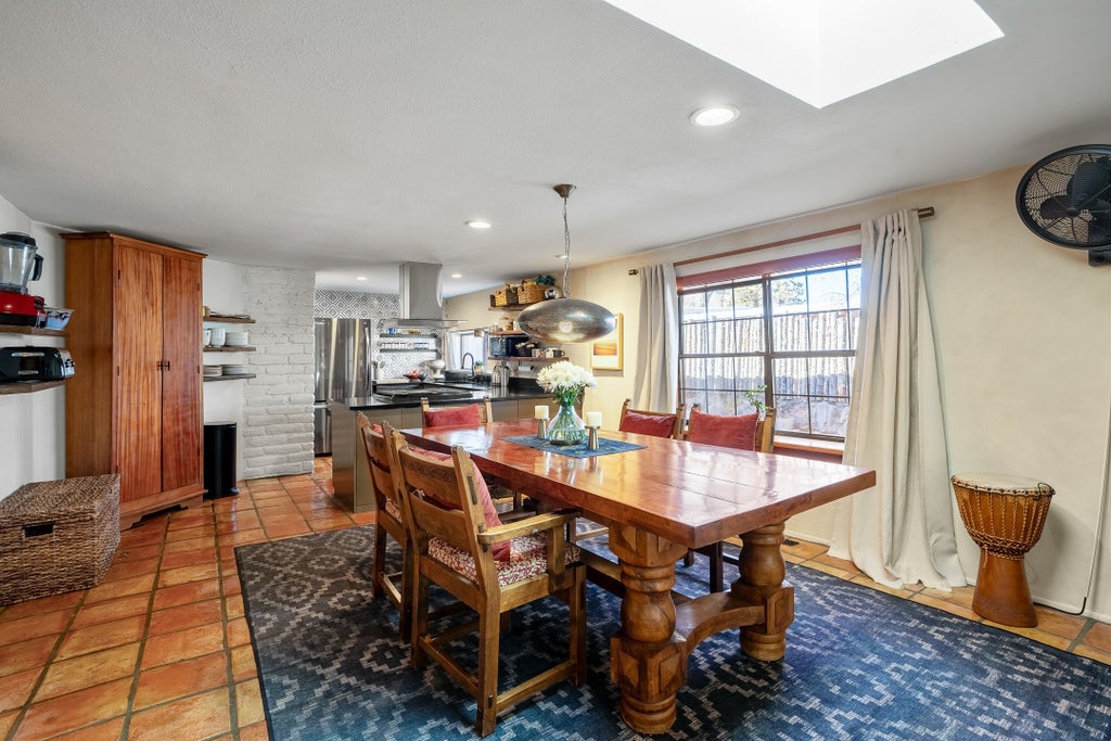 Discover the perfect blend of historic charm and modern updates in this stunning, mostly adobe home located in the heart of Tesuque Village. This exquisite 3-bedroom, 2-bathroom residence features a spacious double-sided fireplace and an expansive dining area, ideal for entertaining. The recently remodeled chef’s kitchen boasts soapstone countertops, a quartz sink, and locally crafted cabinetry, including a hand-hewn mahogany pantry.