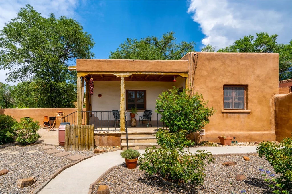 Tucked behind curved, gated walls in the heart of South Capital, this historic Spanish Pueblo Revival home offers the ideal blend of charm, location, and income potential. Built in the 1930s with iconic 15-inch adobe walls, original hardwood floors, and divided-light sash windows, this home exudes authentic Santa Fe character. Currently operating as a successful short-term rental, this property has a strong rental history, making it an excellent opportunity for investors or those looking to offset ownership costs with passive income. The thoughtful floor plan includes two private bedrooms, a spacious living area, and excellent flow for both hosting and relaxing. Step outside to enjoy the beautifully crafted flagstone patio and shaded portal, surrounded by mature trees and romantic gardens. Backing onto the historic Arroyo Tenorio Acequia, the setting is peaceful yet connected. Boasting a Walk Score of 91, you’re just moments from the Plaza, River Walk, top-rated restaurants, cafes, art galleries, and Santa Fe’s vibrant cultural scene. Whether you’re seeking a charming residence, a part-time pied-à-terre, or a turn-key rental investment, this South Capital gem delivers. Imagine the Possibilities and make this beautiful home yours!
