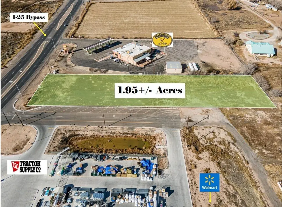 This prime commercial property consists of 1.95+/- acres located on the I-25 Bypass, adjacent to Tractor Supply, Roadrunner Pit Stop and and just west of WalMart. Call today for more information.