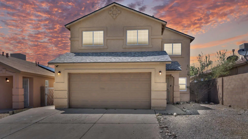 Act now--this home is a must-see and won't be available for long! A spacious 5-bed, 3-bath home at this price is a rare find and ready for its next owner. The roof, main-level windows, and heating & cooling systems have all been recently replaced, offering valuable updates already in place. With refrigerated air and solar panels, average PNM bills are around $13/month--comfort and efficiency combined. The open layout provides flexible living areas, and the two-car garage adds convenience. Step outside to a landscaped backyard with fruit trees, a covered patio, and a garden area--perfect for relaxing or entertaining. Located near parks, schools, shopping, dining, and major roadways. Don't wait--schedule your showing today!