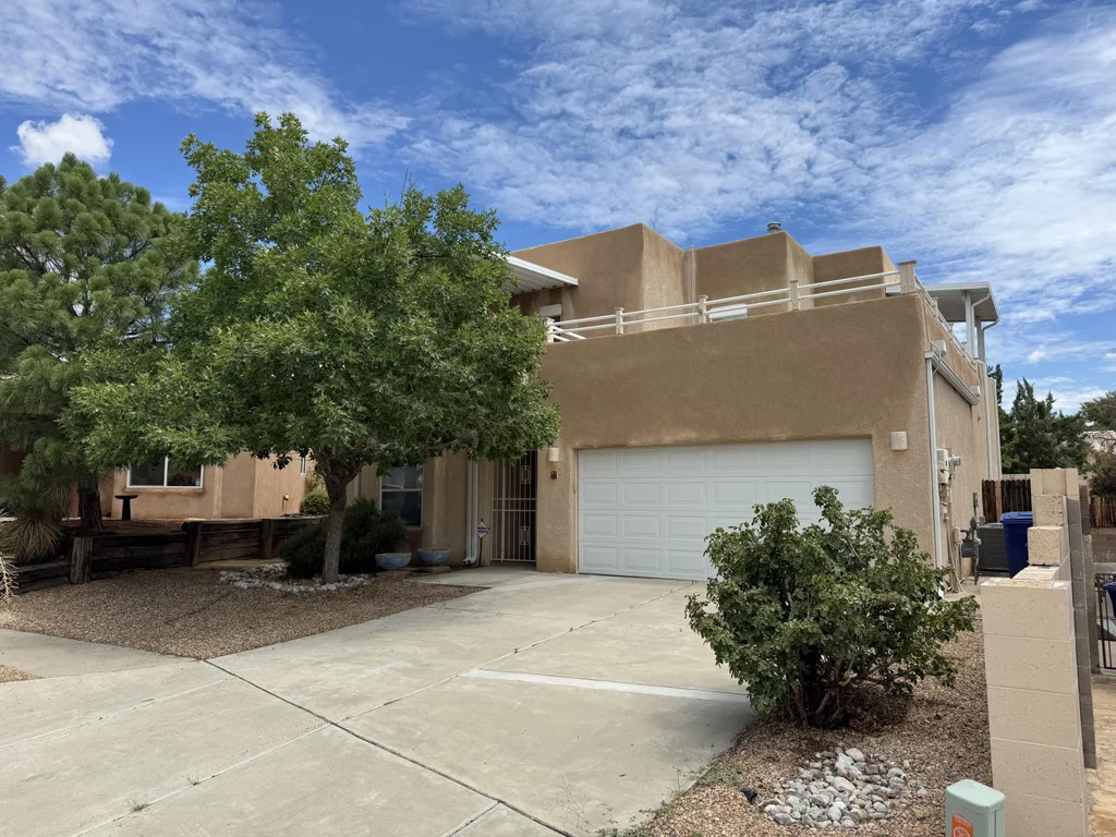 Located in a prime westside location, this home features easy commutes, fantastic views and great amenities! This 4 bedroom home has 4 large bedrooms, 2 beds on main lower level with a jack & jill bathroom as well as 2 upper bedrooms; 1st is a junior primary bedroom with its own 3/4 bathroom and personal patio access with breathtaking views of the Sandias, bosque and city! The 2nd upper bedroom is the main primary and has its own full master bathroom, spacious size and also a private patio access which wraps around the upper level and joins the other upper patio space. This home has a gorgeous kitchen with granite counters and sink basin, large storage cabinets, black appliances, pantry spaces, saltillo tile on lower level, window treatments, new AC and furnace, solar panels, fruit trees,