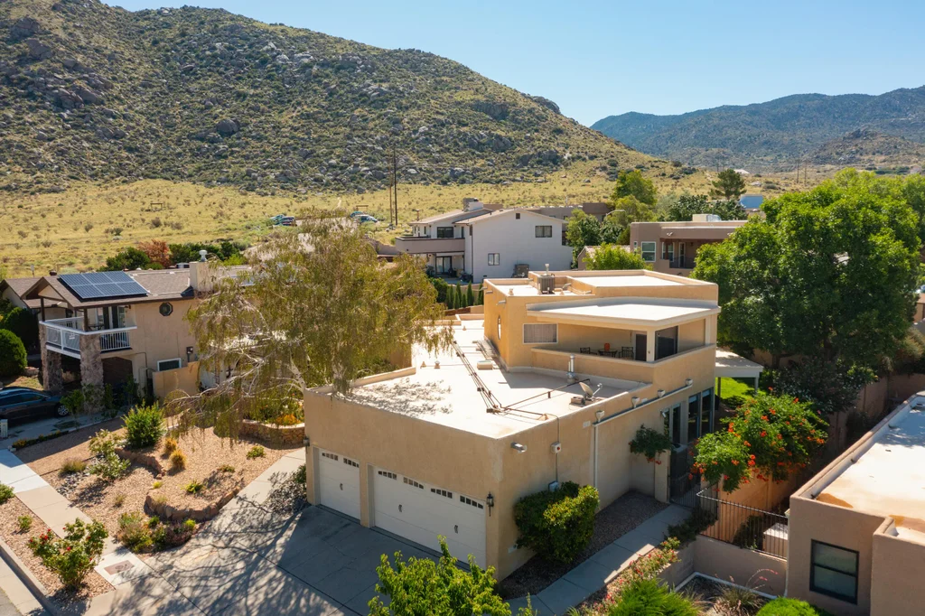 REDUCED $15,000. Location Location - nestled in the foothills at the edge of themajestic Sandia Mountains you'll find this charming, elegant, and fun home with alovely floor plan that's easy and comfortable to live in. If you desire serenity, theoutdoors, and beautiful views you must see this well cared for, custom built homewith 4 bedrooms, 3 bathrooms, 3 car garage, plus a gorgeously designed - selfcleaning, heated pool and hot tub that has it all. Natural light floods the openfloorplan making it that much more special and bringing the outside in! There are alsotwo large, round windows with reflective glass offering more views of the beautifulmountains; one in the stairwell and one in the primary bath upstairs. In addition, thebeautiful landscaping, both (More)