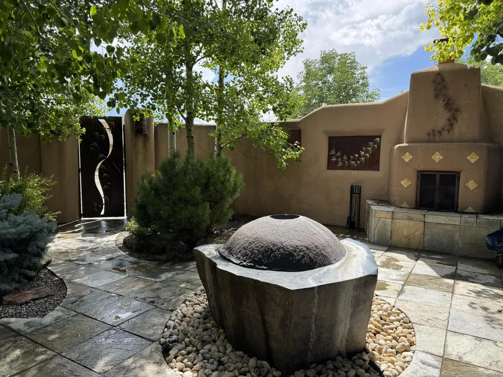 Check out the magical courtyards in the coveted Oshara Village community home featuring abundant natural light and open concept living. The main house has 2 bedrooms and 2 bathrooms. High ceilings with skylights bring the outdoors in and large traditional southwestern vigas remind you that you are in the Southwest. The beautifully remodeled chef's kitchen features a KitchenAid gas stove and oven alongside a Samsung smart refrigerator. The spacious living room has gallery lighting throughout, perfect for your art collection. The wood burning kiva creates a quintessential Santa Fe ambiance with hand chiseled solid wood doors and stone tile are found throughout this dreamy home.