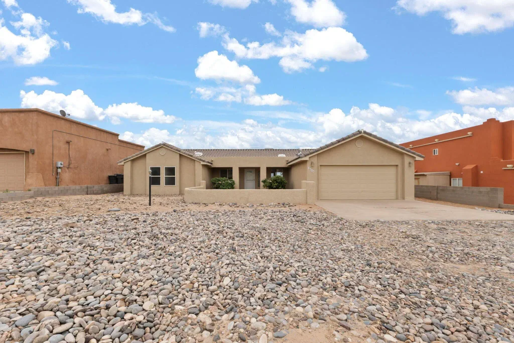 Welcome home! This stunningly renovated home, situated on a 0.5-acre lot, boasts easement access and unobstructed views of Sandia Mountain. This 3-bedroom, 2-bath plus flex room beauty offers vaulted ceilings, fresh paint, a new furnace, a new water heater, updated fixtures, and a sleek kitchen with new counters and appliances. The spacious open layout is perfect for entertaining, anchored by a cozy fireplace. Retreat to the primary suite with a spa-like bath, dual vanities, a soaking tub, and a separate shower. Enjoy outdoor living on the extended covered patio with turf lawn and fire pit. Quiet street, big views, and room to breathe! Schedule a tour today!