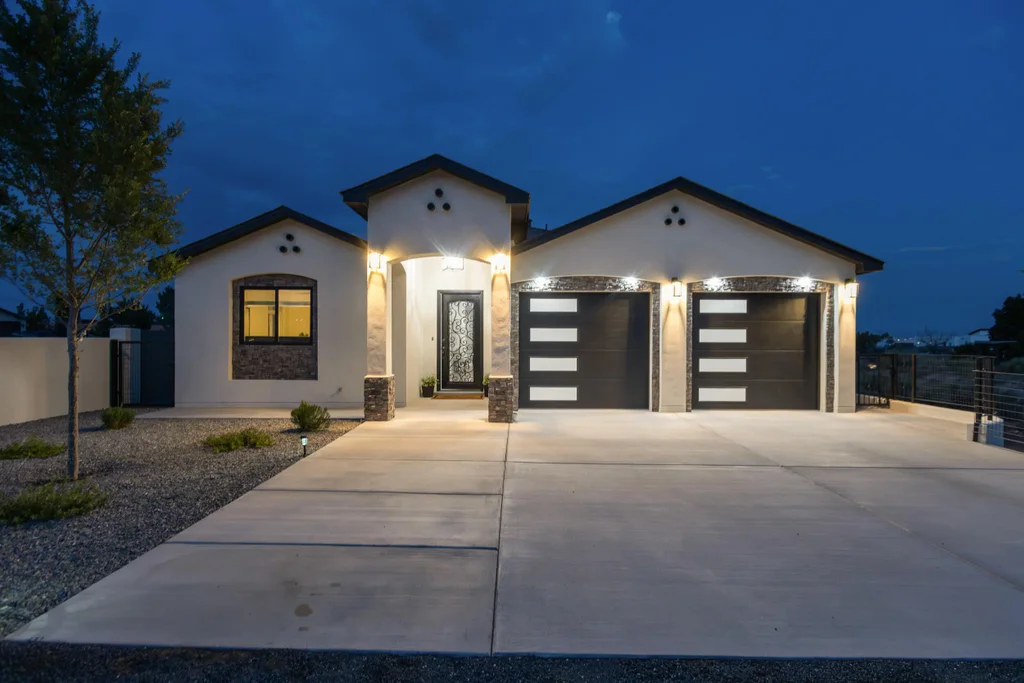 Brand-New Custom Home with Sandia Views!This stunning 4-bedroom, 3.5-bath home showcases custom Venetian plaster ceilings and an open floor plan filled with natural light. The chef's kitchen features waterfall quartz countertops, a huge pantry, and flows seamlessly into the living and dining areas. An oversized 2-car garage offers plenty of space, while the 1/2-acre lot provides room for RVs and outdoor toys. The wraparound patio with custom viga ceilings is the perfect spot to take in breathtaking Sandia Mountain views. Don't miss this one-of-a-kind property--schedule your showing today!