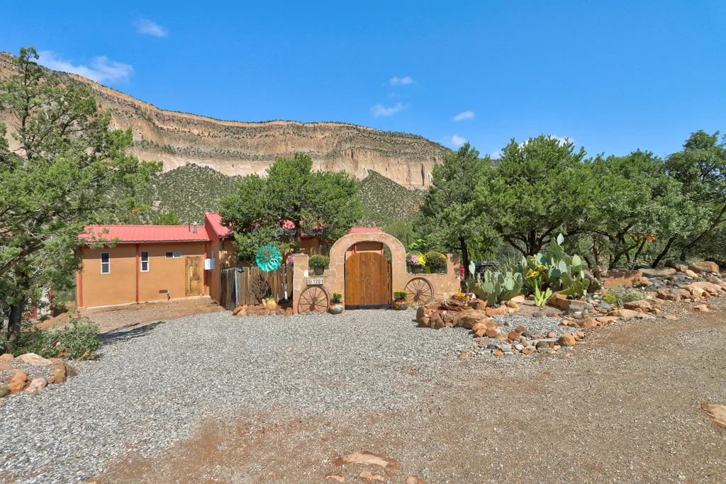 The incredible Jemez River and Canyon views will astound you! Decoratively fenced and landscaped entry courtyard is perfect for sitting around the campfire, and perfect to let the dogs out. Very large country kitchen with newer appliances; great counter space. View-filled dining area; nice living area. Bonus area is currently being used for a 2nd bedroom; but it could also be your home office. Home is mostly upgraded and remodeled from original, but thankfully is still listed as ''manufactured'' which so far has made the taxes low, low, low! Nice Tuff Shed for storage. AirBnB possible with Jemez Springs P&Z approval. Located on exclusive Madrid Rd w/ excellent year-round access. No HOA. County maintained road. Come see it today and make your dream come true! Financing available!