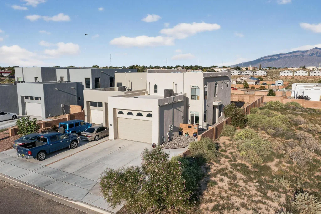 Welcome to this stunning 3-bedroom, 2.5-bathroom home that perfectly blends style and functionality. The open floor plan invites natural light creating an exceptional welcoming atmosphere. Enjoy cooking in the spacious kitchen, featuring modern stainless steel appliances and not one, but two islands, ideal for meal prep and entertaining. Experience the amazing sunrise views over the Sandia Mountains from your private deck, directly accessible from the primary bedroom. At the end of the day, unwind in the inviting ambiance of the covered patio and spacious backyard perfect for warm evenings spent with family and friends. This home offers a seamless blend of indoor comfort and outdoor beauty, making it an ideal retreat for relaxation and entertainment.