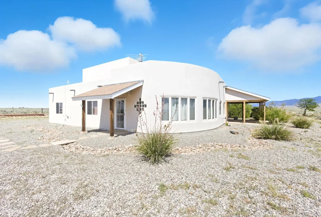 This custom 2,400 sq ft home sits on 8 acres and offers extraordinary views of the Manzano Mountains. Featuring 3 bedrooms and 2 baths, the home boasts an open floor plan between the kitchen and living room, where a cozy pellet stove adds warmth and charm, along with a separate dining area for gatherings. The spacious kitchen includes a convenient island, while oversized hallways add to the airy layout. The primary suite offers a private retreat with a kiva wood-burning fireplace and a balcony to enjoy even more mountain views. Additional highlights include a finished 2-car garage, low-maintenance zero scape landscaping, and a covered back patio perfect for relaxing or entertaining.