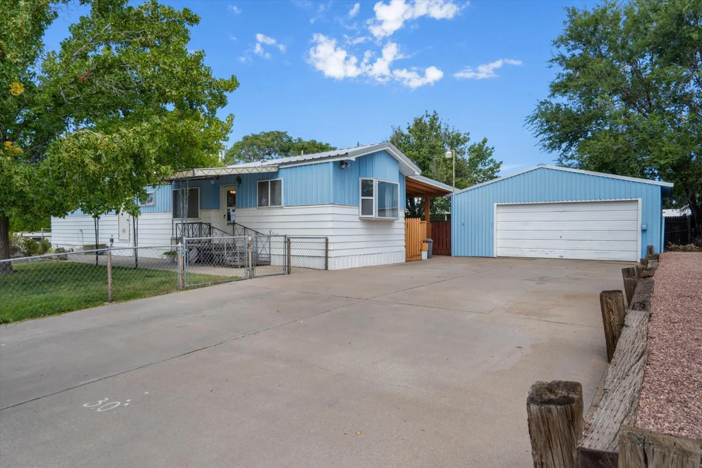Located in the highly desired NE Heights, this clean and well-cared-for home has been lovingly maintained by the same owner for over 40 years. Offering 3 bedrooms, 1.5 baths, and 2 spacious living areas, with a wood burning fireplace, lush landscaping fully fenced front and backyards, shed for additional storage, swamp cooler approx. 4 years old, water heater 2 years, this property provides plenty of room to spread out and make it your own. The home sits on owned land and includes a 2-car detached garage, adding both value and convenience. With mature pride of ownership throughout, this modular home is ready for its next chapter.