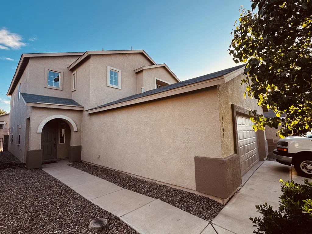 Welcome to this spacious 5-bedroom, 3-bathroom home offering 2,462 sq. ft. of comfortable living in a great Albuquerque location. Priced at $360,000, this home is move-in ready.Solar panels included with no payments, energy efficiency with lower utility costs. Brand-new flooring throughout the home and fresh interior paint for a modern, clean feel. New garage door opener for convenience and peace of mind. Open-concept living area with abundant natural light, perfect for entertaining and family gatherings. One bedroom located on the main floor ideal for guests, multigenerational living, or a private office.Spacious primary suite and generous bedrooms upstairs.
