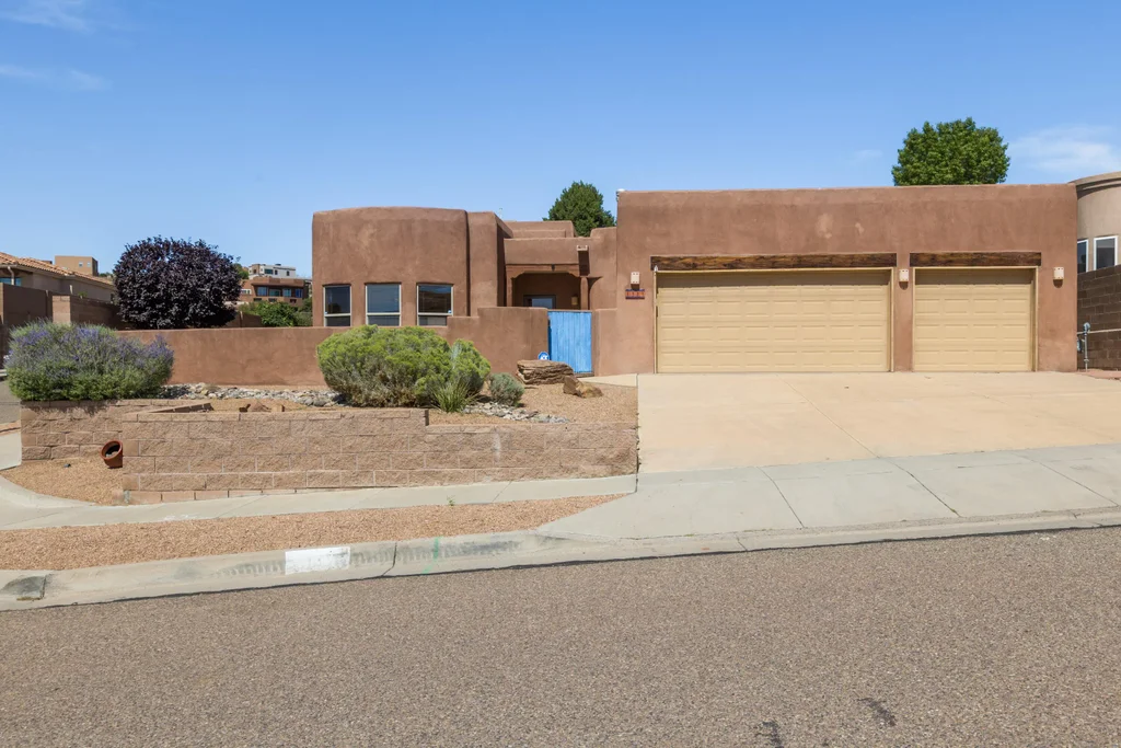 Southwest beauty on story 3BDR/2BA/3CG! Outdoor courtyard, corner lot, private backyard has tiered garden, outdoor BBQ area, rooftop view deck! Great room features wall of windows, vigas, Kiva fireplace, tile flooring. SW style kitchen features lot of cabinets, East facing sunny bkfst nook, bkfast bar for gathering & large pantry. Refrigerator, washer & dryer stay. Radiant heat and AC. Primary bedroom has a separate office w/glass doors, updated bath with granite countertops, furniture style self closing cabs, oversized shower, walk-in closet with closet organizer. 3car finished garage has a separate storage room for storage or workshop. Close to Thompson Fenceline Trail, shopping, parks!
